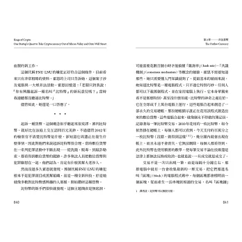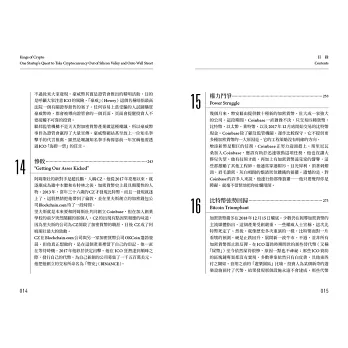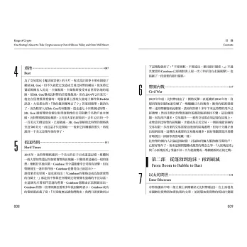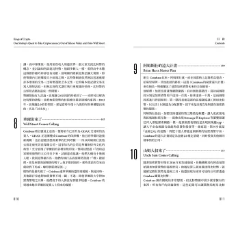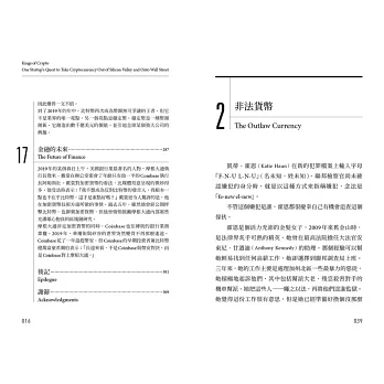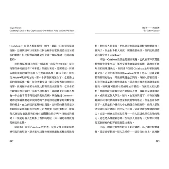 ►這本書講述一群叛逆者的故事,他們比任何人都更早洞悉金融的未來,並設法扭轉乾坤,讓未來走勢朝著對他們有利的方向發展。讀這本書就像用聽診器打開一個金庫鎖,金庫裡藏著加密產業的起源。喀噠、喀噠、喀噠,鎖頭一開,大量的秘密傾洩而出。Coinbase是矽谷新創界的黑馬,讀這本書可以瞭解Coinbase的成功關鍵,以及它令投資金主怦然心動的原因。在中本聰的真實身份揭曉之前,這本書是幫你深入了解加密技術的崛起及其走向的最好方法。——羅伯.哈克特(Robert Hackett),《財星》(Fortune)資深記者