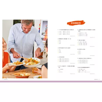 ◆解答所有疑問&詳介實作指引:優質飲食的重要原則、對身體的影響、7大類食物、刻板印象與不實謠言、劣質飲食的風險、健康飲食實作,如:如何選擇並攝取好脂肪、如何照顧腸道菌群健康、升糖指數對體重的影響、Omega 3、6、9可在哪些食物中找到、抗氧化物何處尋、哪些食物有助健腦、哪些方法又可降低罹癌風險等。