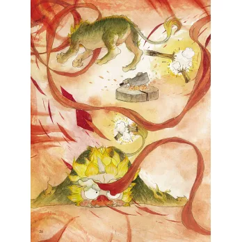 不幸的老婆婆,老伴去年被年獸吃了,所以今年村民紛紛跑上山躲年獸的時候,勇敢的老婆婆決定留在村裡和年獸拼命,為老伴討公道......
