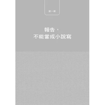 我還記得當初那股既鬱悶又煩躁的心情,所以我想將這些報告基本功及實用方法,分享給擁有同樣煩惱的讀者──特別是那些覺得寫報告很難、並為此悶悶不樂的人,希望這本書能帶來一些幫助。