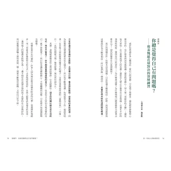 或許你看過許多心靈成長、愛自己的書籍,可是看了那麼多,還是經常會覺得心裡空空的,有什麼東西沒有被填滿;還是時常擔心,別人會「看破你的手腳」;還是每天害怕,自己會變成別人的負擔;還是在人群之中覺得自己是怪咖,在發生不好的事情的時候,覺得是自己的責任⋯⋯為什麼會這樣?為什麼明明已經那麼努力試著去愛自己了,卻仍然覺得自己是個麻煩?
