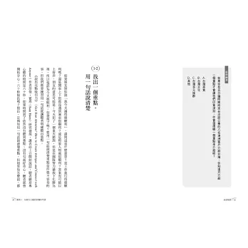 你覺得從一本書學一小段的表達很不值得嗎?或許我們應該思考過去那些談表達的書真的有幫助到你嗎?也許,我們應該花一本書的精力去學習那關鍵的一段表達思考,不是嗎?