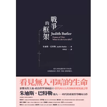 《戰爭的框架》平裝版於二〇一〇年集結出版。面對以色列與巴勒斯坦的戰火,美軍在關塔那摩灣與伊拉克的虐囚照片曝光流出、「第一世界」公共知識分子為了該如何回應英美霸權與開啟戰火而辯論不休,種種「震驚」讓巴特勒寫下這幾篇文章。儘管世界局勢變化快速,但戰爭、性政治與宗教不寬容依舊是今日社會的重大分歧與嚴重課題,巴特勒的評論言猶在耳,需要我們細讀審思。