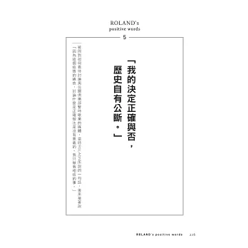 ★不只是一本ROLAND的「名言集」,更是基於ROLAND名言之上的「自我啟發書」,可帶給每個人勇氣與自我覺察。