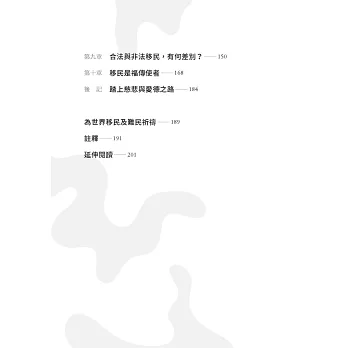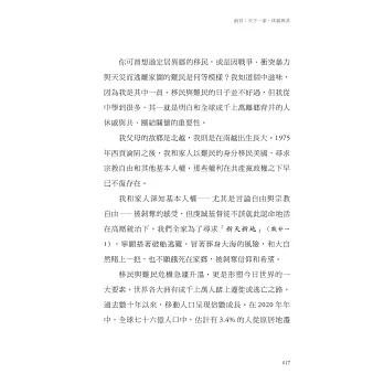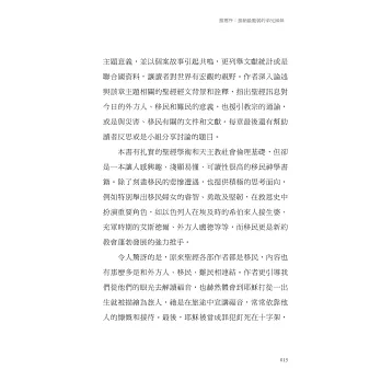 ◆ 以移民的現況與真實故事為基礎,引起讀者共鳴;列舉文獻統計和聯合國資料,拓展國際視野,正視難民危機與移民的全球現象。