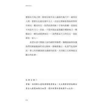 「以平易近人的高明手法,將移民複雜多樣的現況與聖經中經歷類似的章節連結起來;具體說明聖經道出了現今因社會政治與氣候而成為難民、尋求庇護者、奴隸買賣,以及遷徙世界各地的移民所遭遇的困境。雖然書中論及天主教的教導,但為所有基督徒帶來的收穫,遠遠超乎想像!」──丹尼爾.卡羅(M. Daniel Carroll R.),知名基督徒作家、惠頓學院(Wheaton College)聖經教授