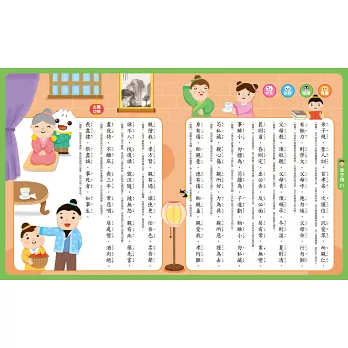 淺顯解析與翻譯──採用圖文配合淺顯易懂的解釋,生動可愛的插圖及解析使孩子更能了解文言文,幫助孩子從小培養語文能力。