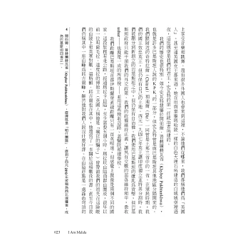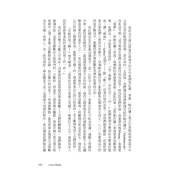 現在,每天早上當我睜開雙眼,我渴望能見到放滿我的物品的那個舊房間,有我滿地的衣服,還有架上陳列著學校頒發的獎狀。但是我卻是身在一個跟我親愛的祖國巴基斯坦、我的故鄉史瓦特河谷有五個小時時差的國家。你能想像的便利這裡一應俱全。每個水龍頭都有自來水,冷熱水任君選擇;不論晝夜,控制燈光只需要按下開關,不需要用油燈;也不需要先去市集搬瓦斯桶回來接煮飯用的爐子。這裡的一切都非常現代,甚至只要拆開包裝就有熟食可吃。
