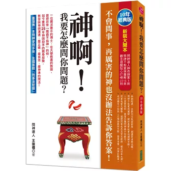 王博士的這本《神啊!我要怎麼問你問題?》,可以說是全國第一本非常仔細且有條理地教我們如何問神明問題的書籍。我相信,讀者閱讀此書後,對於道教用擲筊來問神明問題會有更深入的了解,有助於讓自己有個提問方向,再加上正確使用擲筊的方法,爾後如果遇到問題,我們也可以自己跟神明諮詢,避免遇到問題後驚慌失措、六神無主,以至於被有心人士或神棍之流所制約,不僅勞神又傷財,而問題卻又依然存在。如果您閱讀了此書,不管遇到人生什麼問題,恭喜您,可以試試跟祂展開另類的溝通了!--沈佳蓉,高雄長庚醫院復健科物理治療師