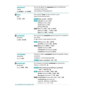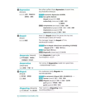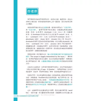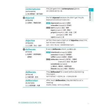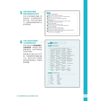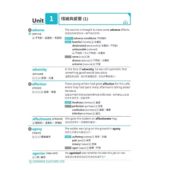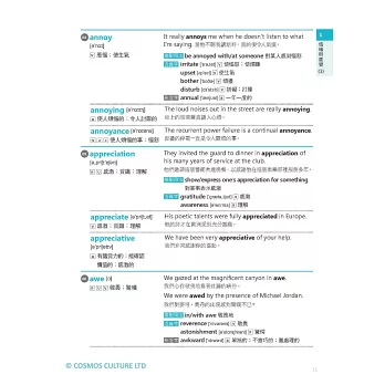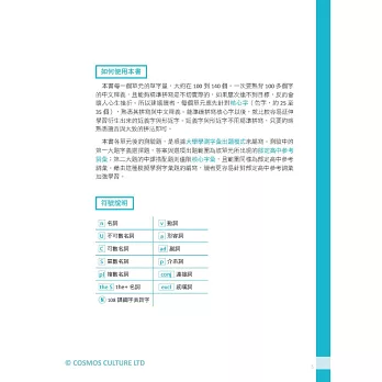 將單字各詞類變化羅列一組且配有例句,一次背齊單字不同詞性拼法,提升學習效率。單字後則列出搭配用法,一次搞懂單字用法與搭配詞,協助活用單字,增進寫作能力。