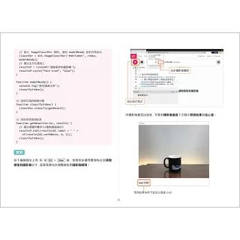 本書一開始會先介紹機器學習概念與 p5.js web editor 線上開發環境基本操作, 接著直接體驗使用 ml5.js 中的現有模型, 實作可以辨識特定物件的影像分類器。
