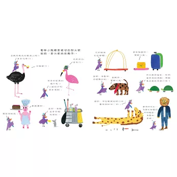 經營一家旅館真是不容易,需要有獅子經理掌控全局、長頸鹿先生定期維護器材、紅鶴小姐在餐廳為客人服務......等。