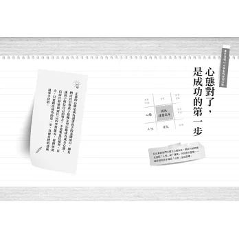 作者很貼心的用「曼陀羅九宮格思考術」,把所有影響孩子學習考試的因素,針對認知、心理、技巧等層面,有系統的分類、整理,並在書中的各章節來解答。提醒家長們,這本書不是直接讓孩子自己讀、自己做的,當中有許多「考試的正確心態」需要家長先建立;還有學習目標、時間管理等技巧,也需要大人不斷檢視、激勵孩子,甚至以身作則,才有可能成為孩子的習慣!