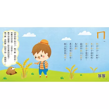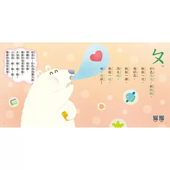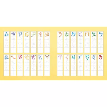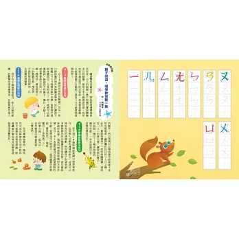 每個注音符號以識字為目的創作一首兒歌,並以顏色標示每首兒歌所練習的注音生字,輕鬆記憶學認字。書中附有注音符號表,掃描QR Code就能學會正確發音!還有注音符號筆順,提供孩子描寫練習。