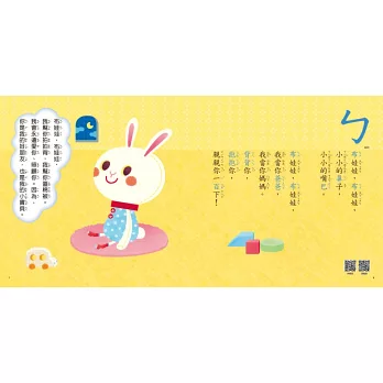 37首兒歌皆是全新創作,題材豐富,取自孩子的生活經驗,充分表現韻文的節奏感和詩意的美感,鼓勵孩子大聲朗讀,不僅提升拼音與識字能力,還能培養孩子對文學藝術的感受力。