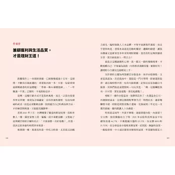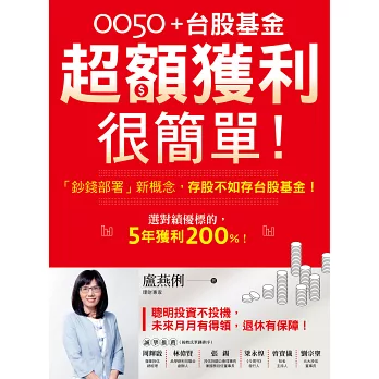 理財專家盧燕俐將在書中不藏私分享她的理財之道、行情下殺時的應變原則,以及獨到的「母子基金」配置法:即使45歲才開始定期定額,60歲退休時也能無壓力樂享退休生活,邁向複利人生!