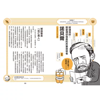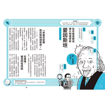 將40位科學家的人生都化作「4~6頁小故事」,從「科學家的小檔案」首先揭露他們私底下的「個性、最喜歡&最害怕的事物、綽號」等,接著一窺天才科學家「有點ㄎㄧㄤ的日常生活」以及「會讓人驚呼的奇怪癖好」,當然也包含「重要的科學貢獻」,全書穿插趣味漫畫插圖,讓你輕鬆獲得滿滿閱讀樂趣!