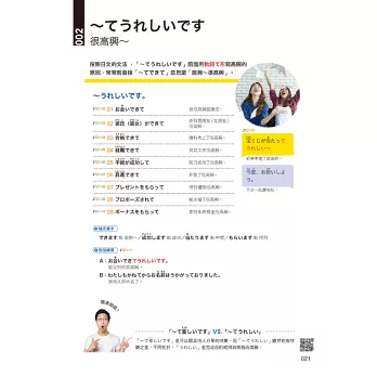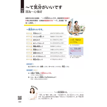 最後由小專欄解答相似句型使用上的差異,避免表達上的誤差;或補充該句型的其他說法,一次學會兩種句型,增加自己口說上的變化,也減少對方一使用替代說法就聽不懂的窘境。