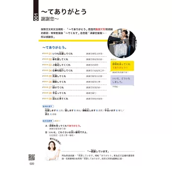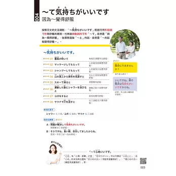 先以每一頁搭配的全彩實景圖片和模擬對話了解該句型適用的場合與時機,聆聽音檔中對話的語氣,進一步掌握其情境。