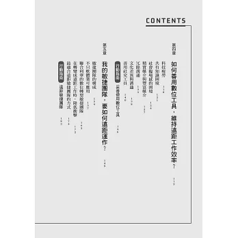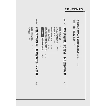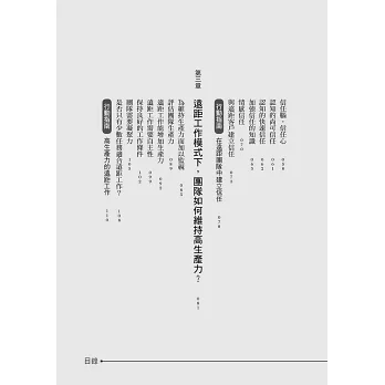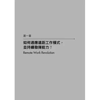 書中亦舉出豐富實例,闡述實際採取遠距工作模式時,多數人會遭遇到的問題,並提出克服方法,幫助個人與團隊維持高效表現。