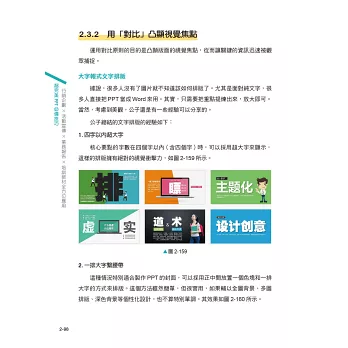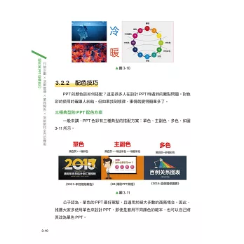 此外,書中還介紹了輔助PPT製作的資源、工具及PPT在其他領域的應用,以便擴展PPT的功能邊界,提升PPT的設計效率。