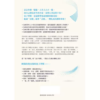 這個建立於量子力學的方法,能夠應用在工作、金錢、戀愛以及人際關係等各種不同領域上,本書更為具體的介紹「思考與行動的習慣」。