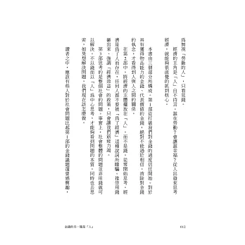 ◤金錢的另一端是人,作者有著強大的使命感,寫出這本書,這是我想做卻做不到的。從書中可以感受到作者的真誠與用心,我願推薦這本好書給大家。──畢德歐夫/投資理財專欄作家