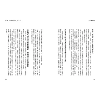 反過來說,那些一直困在相對負面的人物特徵中的讀者,例如破壞分子、小偷、成癮者、或八卦者,也可以藉由本書的內容鼓勵自己追求這些人物的光明屬性。善惡的轉化,距離往往只在一線之間,它們彼此並非真的截然對立,有的只是相對上的不同而已。人只要能對自己行為的初衷抱持著覺察,就能把同樣的行為應用在適合的時機上。