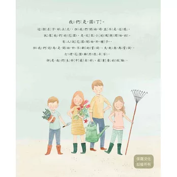 作者喬安娜.蓋恩斯與孩子們與您分享家中的園藝探險之旅。從栽種小盆栽、勾勒花園藍圖、歷經失敗、重新出發到勝過阻礙、享受美好豐碩的成果,他們分享全家人在過程中的心得與收穫。