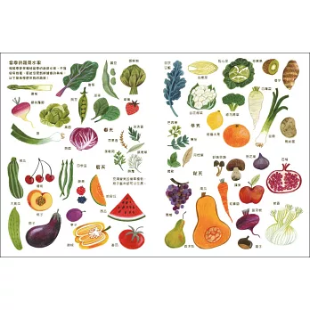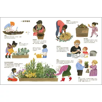 非常喜歡費希塔・莎拉的水彩插畫,描繪了不同季節的蔬果,還有種子和蔬果插圖,非常美麗!這本書鼓勵大家善用小空間來種植自己吃的食物,食譜和園藝簡單好操作,讓人很想試試看呢!――辛西亞