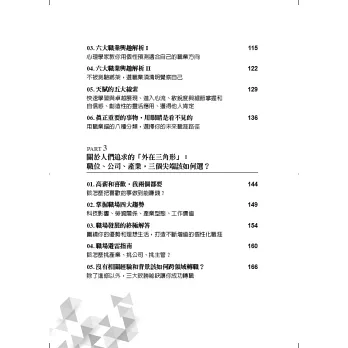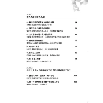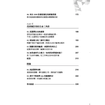 這本書越早看越好,越年輕看越好,越早實踐更好。時間就像是一股洪流,不斷讓我們推向生命的另外一端,用EPSD四大職涯發展階段回頭看看自己的過往,也讓自己後半輩子可以過得更精采、更灑脫、更能發揮自己的價值。用內在、外在及生命三角形評估職涯,猶如企業內部優勢及外部環境一般的體檢,是一個很好的靈魂拷問之手法,可當成您決定志業的分析工具之一。作自己人生的主人,我衷心推薦這本書。――簡博浩
