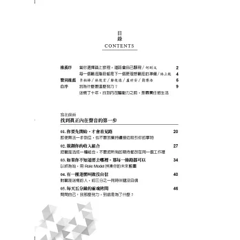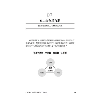 你或許也感到迷茫,也可能是因為你有許多選項,也可能你感到困頓,但你現在手中握有的,是這些迷茫的指引,透過這個職涯指南地圖,你將找到屬於你熱情、天賦、價值觀三大區塊交疊的最佳選擇。現在,打開這本《主人思維》,成為人生的主人翁吧!――何則文