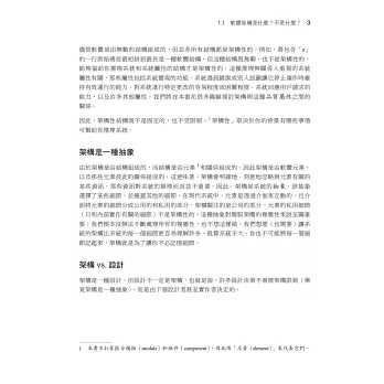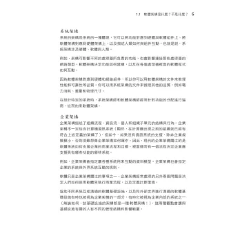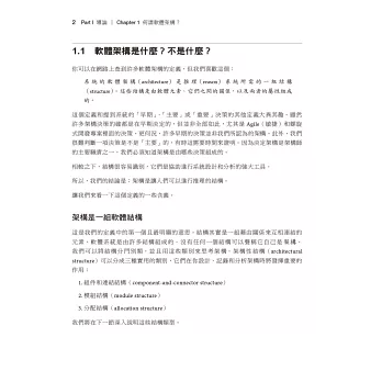 本書作者是三位著名的軟體架構師,將在書中介紹完整的生命週期,展示實用的指引、專業的方法,以及經過測試的模型,可用於任何複雜程度的專案。你將學會如何使用架構來處理快速成長的需求、系統的規模與抽象,以及當系統以新的方式動態結合時,如何管理新興的品質屬性。