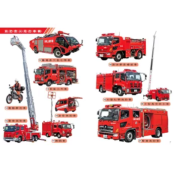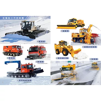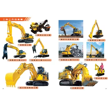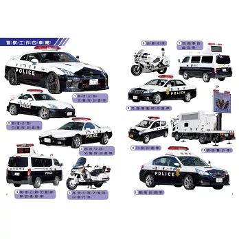 由日本知名的講談社授權,以用途分門別類,收錄300種以上的工作車輛,例如警車、消防車、救護車、挖土機、傾卸卡車、堆高機、除雪車等等,即使有些車輛只有在日本可以看到,但仍可以配合情境帶小朋友認識在城鎮、高速公路、港口、機場等處辛勤工作的車輛名稱,滿足孩子的好奇心,延伸知識觸角。
