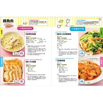 每一種食材都有提供「瘦身常備菜祕訣」、「快手烹調祕訣」,可以事先瀏覽一下,幫助烹煮過程更加順利。
