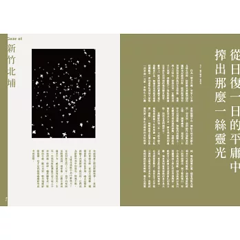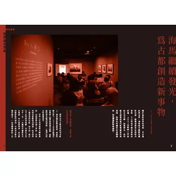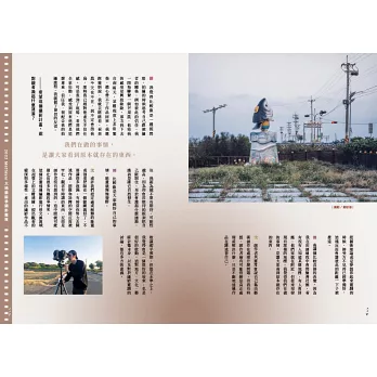 同時,透過關注地方的影像創作者黃迦、莊媖智、黃弘川,寫下他們拍攝之後、影像之外的內心創作過程。並順著地方視角,訪談台南的「海馬迴光畫館」和花蓮的「好地下藝術空間」,耕耘在地影像藝術空間多年來的歷程和轉變。