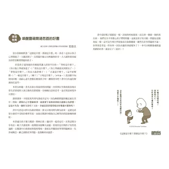 但當孩子連珠砲的這那提問讓人招架不住時…「學校是什麼?」(你以後上學就知道了。)「朋友是什麼?」(你上學就能交到朋友了。)「夢想是什麼?」(你長大就會懂了。)「正義是什麼?」(這不好解釋。)「一般是什麼?」(蛤!)「立場是什麼?」(#¥…)當詞窮不知如何回應或耐心盡失想敷衍搪塞孩子時,翻開書本吧!書中自有通往解惑的任意門。