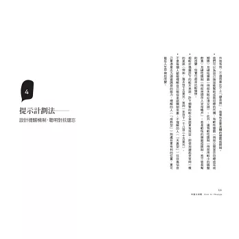 計畫提示法:「單純忘了做」是妨礙我們改變的隱形殺手。練習在計畫中加入提示(發薪日就要存退休金),不要凡事仰賴大腦記。