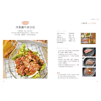 開火就上手料理:椒麻辣拌牛肉、味噌豬肉野菜燒、麻油鹽蔥雞肉串、紐奧良風杏鮑菇燴淡菜、焗烤鹹豬肉馬鈴薯、香料番茄肉丸子、韓式滷鵪鶉蛋…