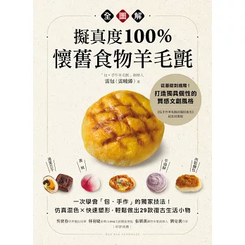 本書除了收錄有著酥脆表層、格紋烤痕的包˙手作代表作「菠蘿麵包」,更包含多款課堂、市集中最受歡迎的炸彈麵包、芋頭酥、滷蛋、豆干、蚵仔煎等,「不能入口,卻愛不釋手」的擬真美味!