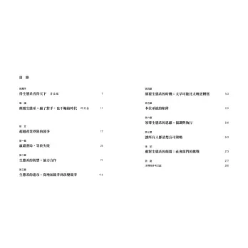 本書從生態系的角度,分析了許多經典案例,要打造一家企業,你需要適應生態系的改變,但要創造一個產業,你需要造就生態系的改變。——詹益鑑,Taiwan Global Angels 創辦人