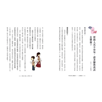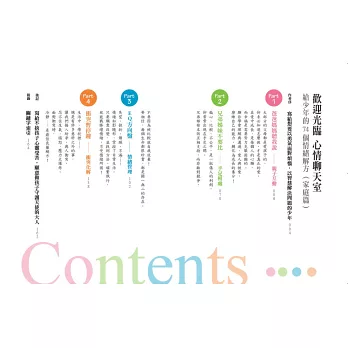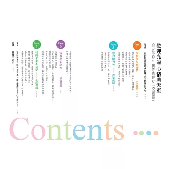 本書中提供許多「關係相處及情緒困擾」的實例解惑與說明,淺白文字卻深入每位「苦惱在心裡口難開」的父母或孩子們的心聲,並直接示範傾聽自己、傾聽他人,找到表達及溝通的要點與技巧。