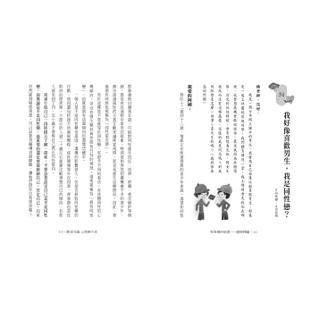 本書集結許多少年在生活中提出的問題,並帶領大家探索與了解自己的情緒、注意與思索其他人的心情與想法,給予清楚的思考方向與策略;你會發現,原來不是只有自己有這樣的困惑與糾結。