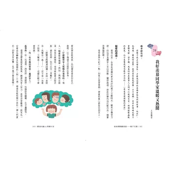 小時候父母會買繪本和孩子一起共讀,這本書也很適合親子共讀,這一次換你來邀請父母走進你的世界。你可以透過書中的故事向父母表達自己的心聲和煩惱,也讓父母有機會學習更好的方法來和孩子互動。