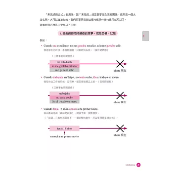 每一位學習西語中的你,有一天都有可能成為課文中的Alejandra,飛到一個西語系國家,去體驗另一個版本的人生。這本書裡面的每一個句型,未來你都有機會派上用場。