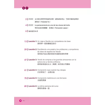 國內目前少有一套從零起點到B1程度、針對台灣背景的西語學習者而設計的西語教材,市面上許多教材都停留在一、二冊,學習者尋找進階程度的銜接教材常遇到困難。非常感謝瑞蘭國際出版團隊,願意投入資源出版這套教材,期待「我的第X堂西語課」系列教材,能陪伴越來越多對西語有興趣的台灣朋友,從零開始無痛地進入西語世界大門。