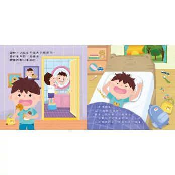 ●貼近生活經驗:看似平鋪直敘的故事情節,搭配了角色互動的對話、童趣的圖象,以及讓人會心一笑的轉折點,把生活習慣繪本變好玩,用不說教的方式讓親子溝通更順暢。