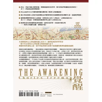 這本博學又令人振奮的書,其主題簡直就是西方心智一路從西元五世紀古典文明滅亡到中世紀及文藝復興、再到十七世紀科學革命的發展歷程。《覺醒》是一位顯然涉足了各地、飽覽一切並求知若渴的作者所完成的認真學術著作。但它也是以極大熱忱所寫成,且從其廣大範圍來看,想必是帶著極大的勇氣完成......有著清楚到引人注目的設計,結合大量挑選得當的插圖,而完成了一部非凡成就。──克里斯多福‧洛伊德(Christopher Lloyd),女王畫作鑑定人,1988-2005