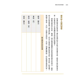 生活在這個資訊爆炸、雜訊過多的世代,每一個人都應該重視自己的表達能力。相信各位都能在此書找到方向和答案。——陳欽章,台灣牙e通創辦人暨執行長