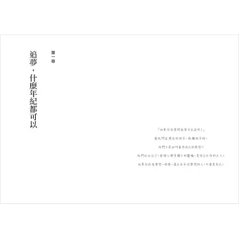 我們可見的人生只有這輩子而已,勇於做自己並不可怕。讓夢想成為遺憾,在生命的最後才感嘆有太多來不及,再多的淚水悔恨也喚不回才是可怕。只要有夢,什麼年紀都可以放手去追逐,但是,需要你還走得動的那一天。